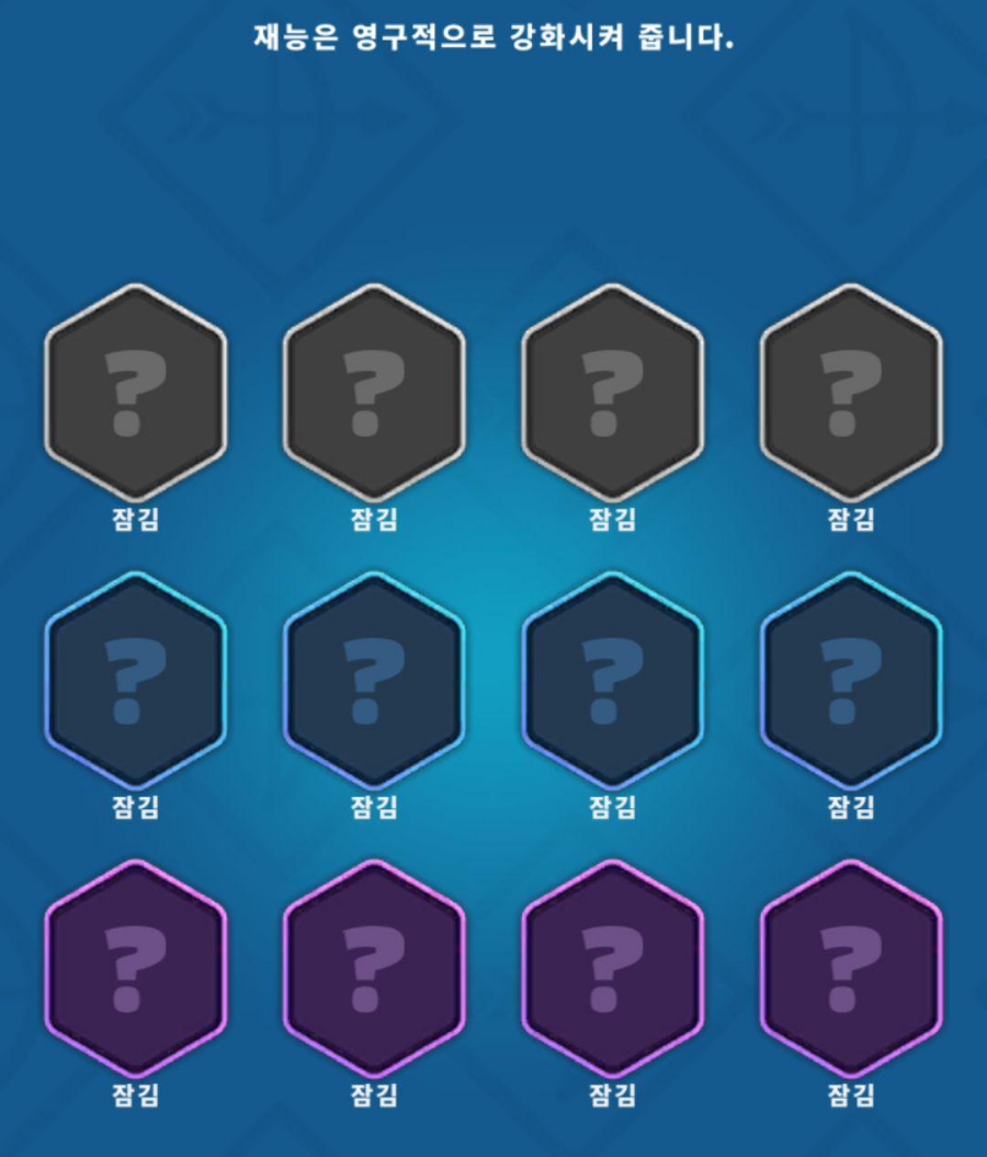 그리고 캐릭터를 육성하는 방법도 다양하게 있는데, 그중에서 '재능'을 통해서 기본적인 패시브를 강화 할 수 있습니다.