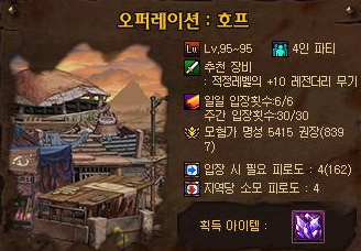 레벨 95부터 입장을 할 수 있으며, 입장 시 피로도 4가 소모되고 지역 당 추가로 4씩 소모가 됩니다.