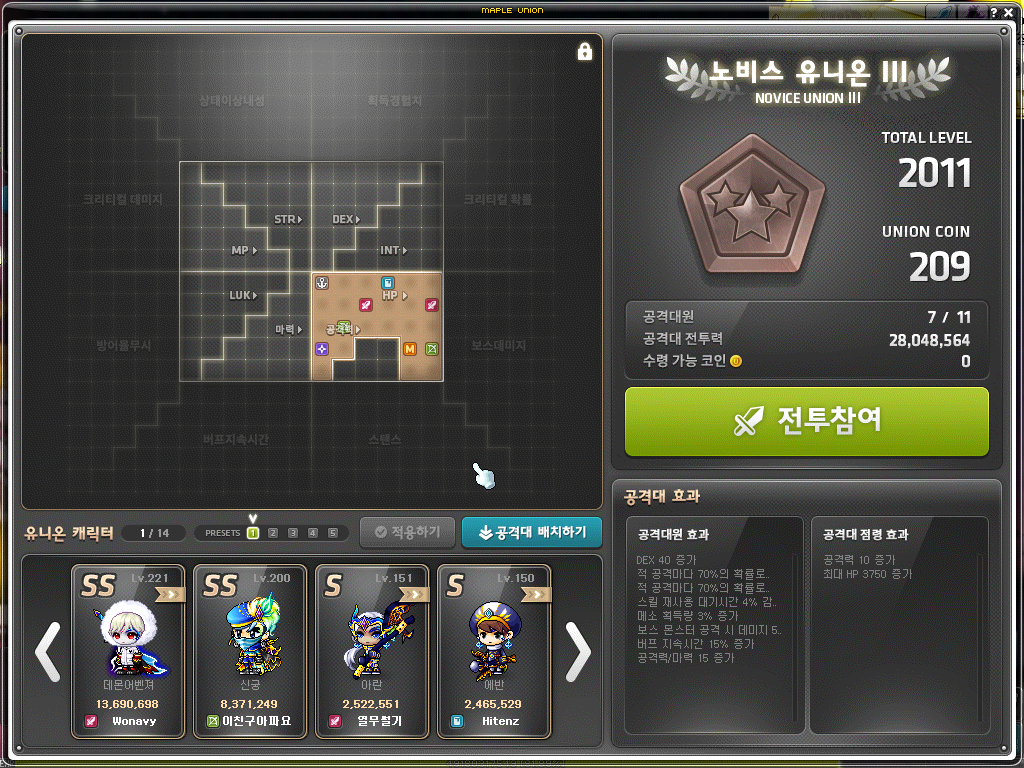 유니온 코인 200개로 노비스 유니온 4단계로 올렸습니다.
