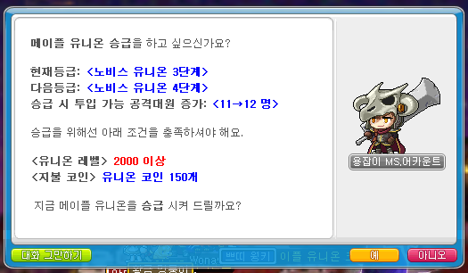 유니온 NPC에게 가면 레벨을 올릴 수 있습니다.