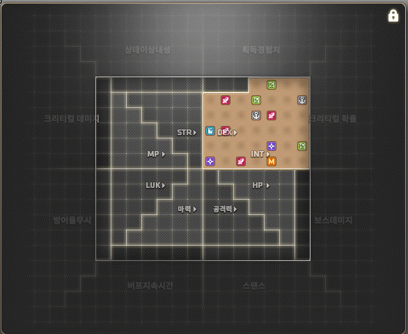 바깥쪽에 있는 경험치, 크리티컬 확률을 한 줄 정도 쓸 수 있게 됩니다.