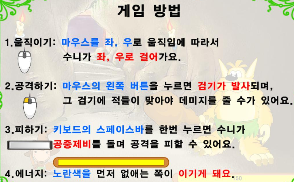 마우스를 움직여서 캐릭터를 조종할 수가 있고, 꾹 누르면 펌프질을 하면서 힘을 모읍니다.