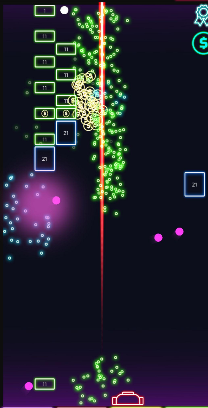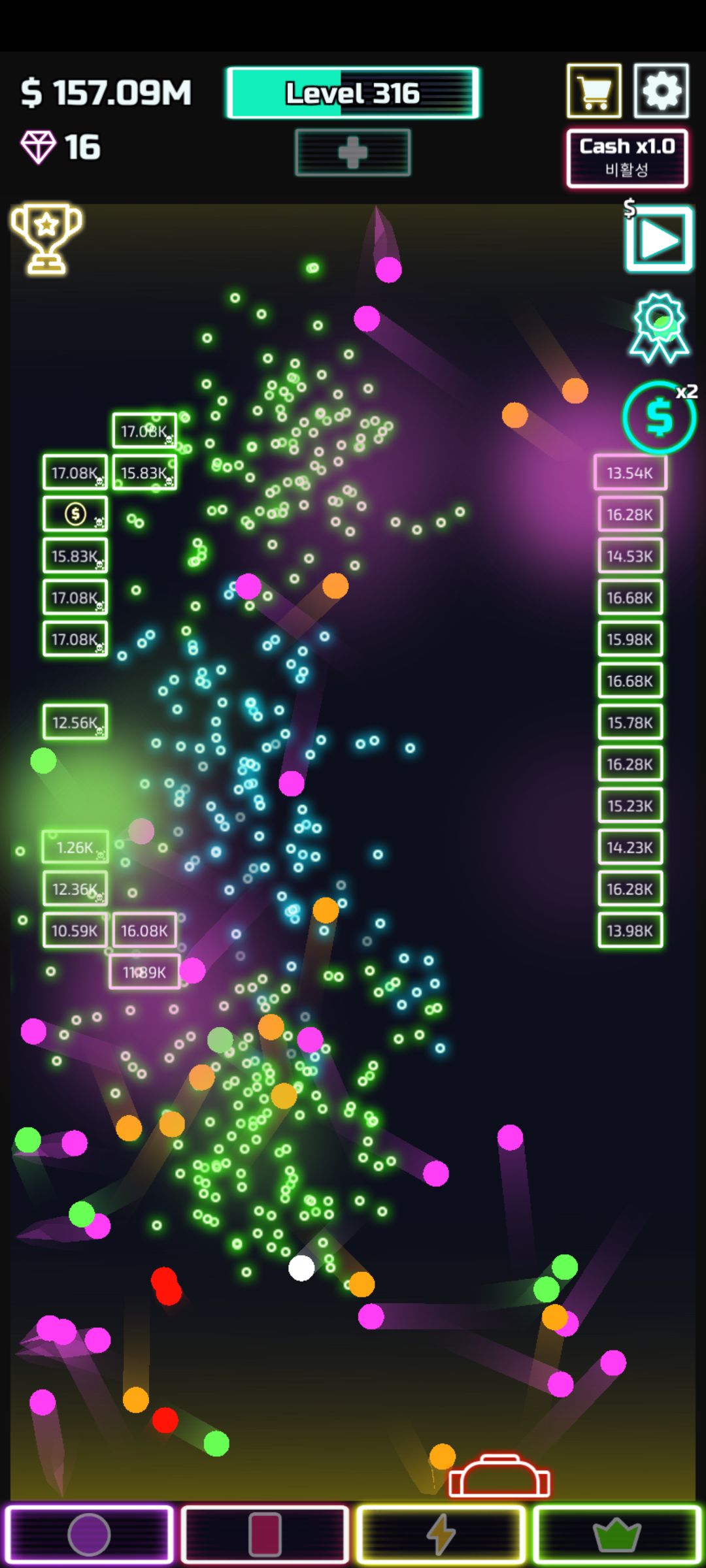일단 공이 자동으로 움직이며 블럭을 깨드립니다. 여기서 공을 업그레이드를 할 수 있고