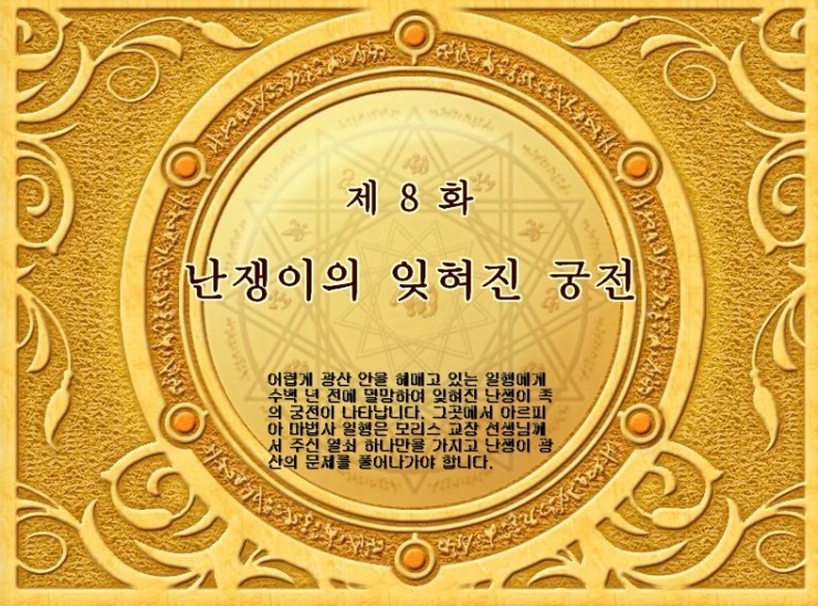 그곳에서 아르피아 마법사 일행은 모리스 교장 선생님께서 주신 열쇠 하나만을 가지고 난쟁이 광산의 문제를 풀어나가야 합니다.