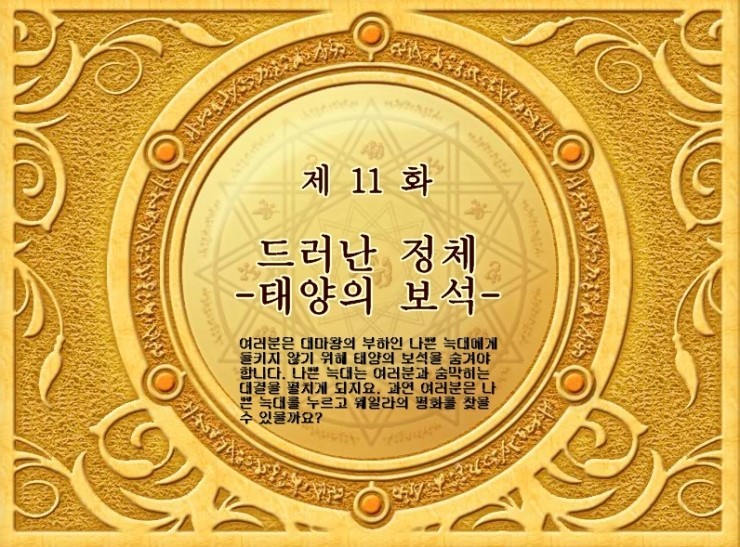찰흙판에 표식을 넣어보니 찰흙판은 데런 왕국을 가르키고 있었다. 데런 왕국에 찾아가 세자르 3세를 알현했다. 세자르는 부하들에게 왕국 경기장에 있는 태양의 보석을 아르피아 마법학교로 수송하라는 명령을 내렸다.