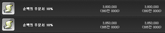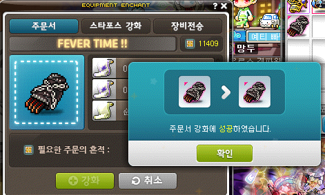 주문서 아이템은 피버타임의 영향을 받지 않아 10%라는 확률 때문에 잘 붙질 않습니다.