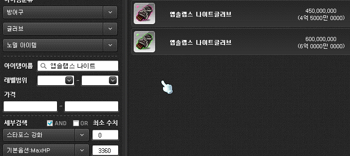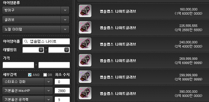 여기에 공격력까지 있는 장비는 더더욱 비싸고 매물도 없죠.