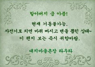 고향에 도착해서 만난 할아버지의 모습은 정상이 아니었다. 막 상대방을 계속 비난하고 조롱을 계속하고 있는 모습이었다. 촌장님께 물어보니 엉덩이에 털이 나는 그런 증상도 있다고 들었다.