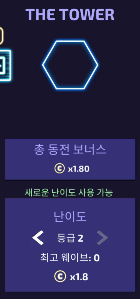 그리고 난이도가 높을 수록 얻을 수 있는 동전의 배수가 올라가게 됩니다.