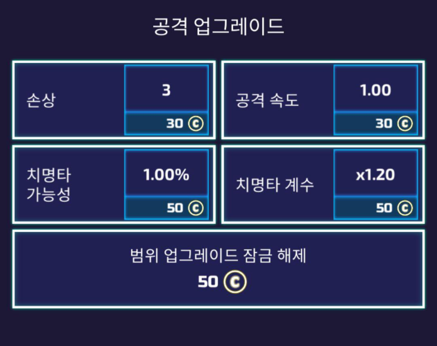 (이 업그레이드는 패시브처럼 쭉 가기 때문에 동전을 사용한 업그레이드가 중요합니다.)