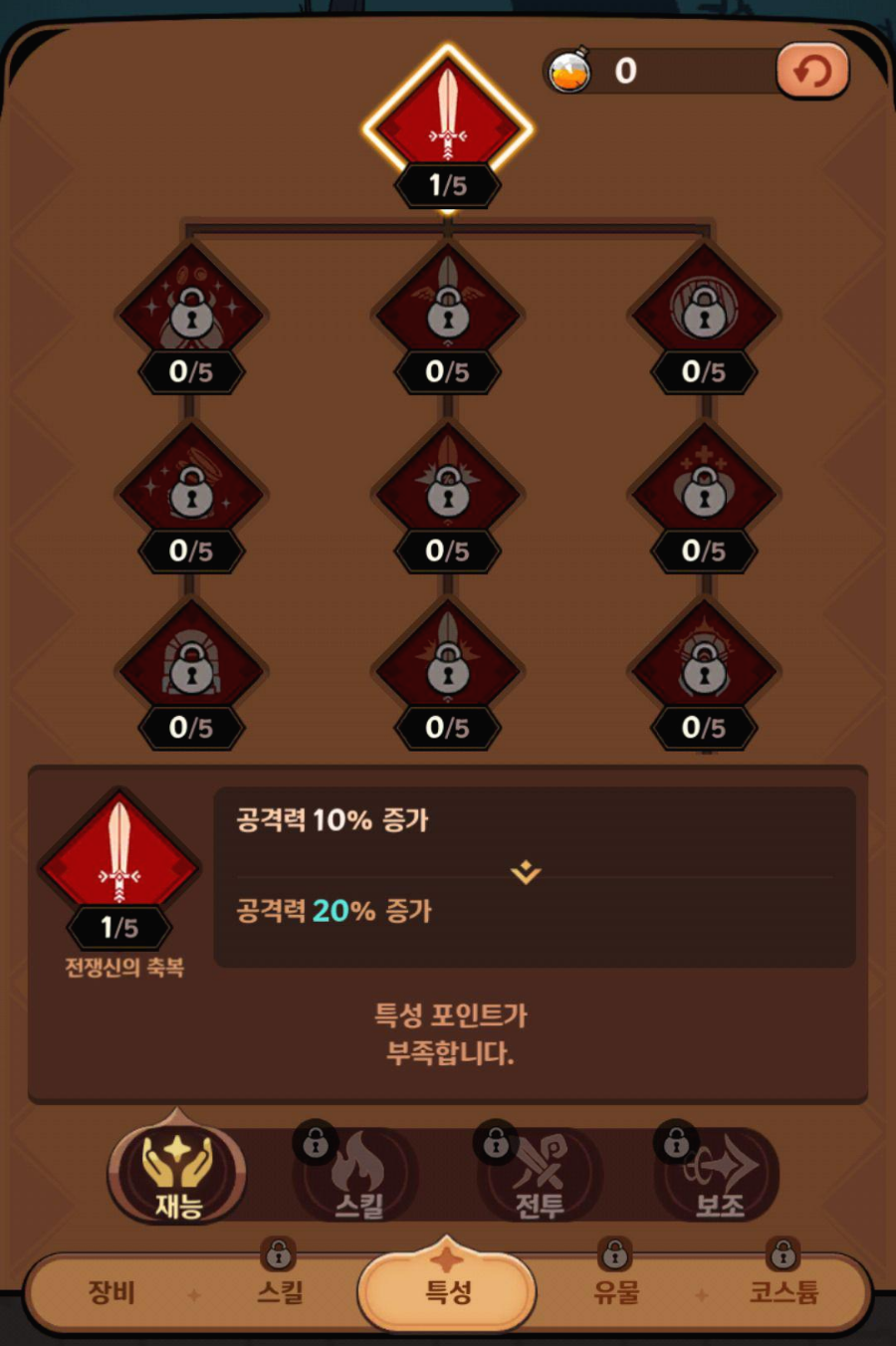 몬스터를 잡고 레벨업을 하면 포인트를 얻게 되는데, 특성을 찍을 수 있습니다.