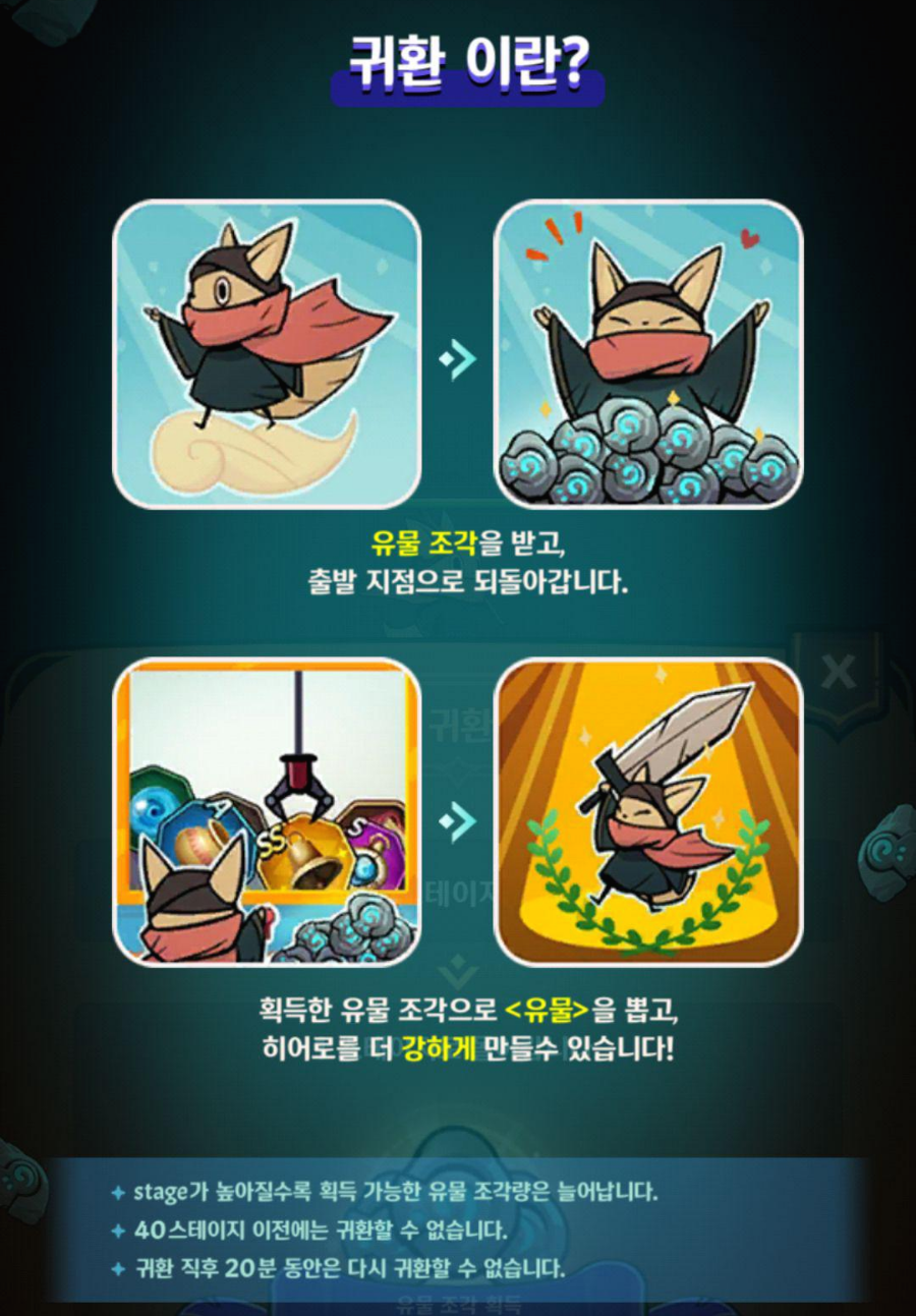 '귀환'을 하게 되면 스테이지에 비례해서 유물 조각을 얻게 됩니다.