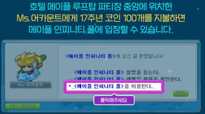 메이플이 17주년이 되면서, 호텔 메이플이라는 이벤트가 시작되었습니다.