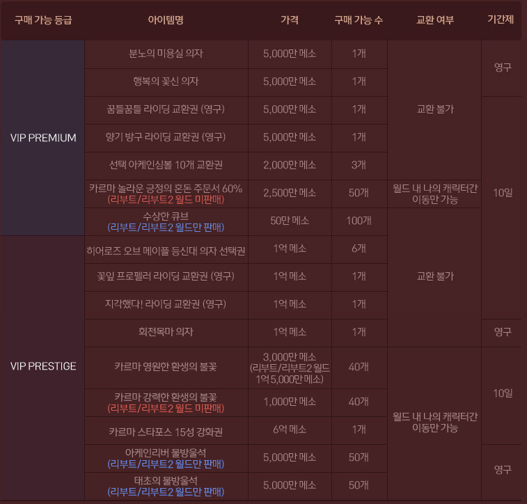 | VIP PRESTIGE | 누적 30 포인트 (누적 6,000 코인) |