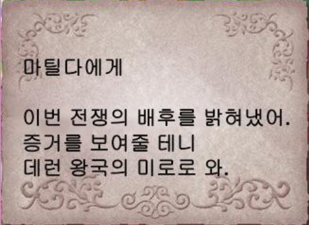 데런 왕국의 미로 안에서 아수리아 왕국의 첩자의 증거가 발견이 됐다는 이야기였다. 아론 선생님은 악명 높은 몬스터 던전 중의 하나라고 알려주었다. 옥새를 훔친 범인이 미로 속으로 들어간 것을 보았고, 데런 왕국의 태양 기사단이 위험을 무릎쓰고 증거를 찾아왔다는 이야기도 들을 수 있었다.