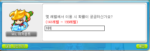 181레벨은 한 번 이용때 최대 6레벨(5%) 이네요.