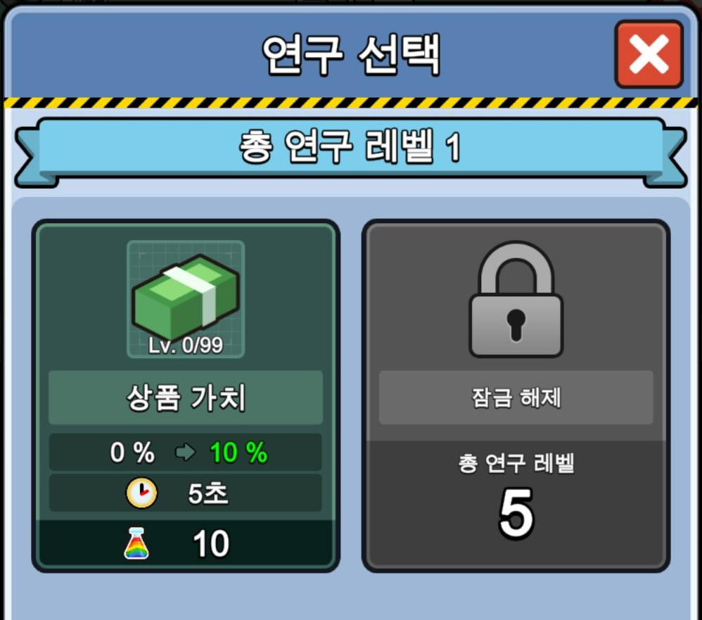 나머지 두 건물이 중요한데, '연구소'는 연구를 통해서 파괴, 생산, 판매 라인의 능력을 영구적으로 올릴 수 있기 때문에 가장 중요한 곳이라고 할 수 있겠습니다. 레벨이 높을 수록 연구 시간이 길어지고, 각 라인에 맞는 매니저를 배치를 하면 연구 시간을 어느정도 단축을 할 수 있습니다.