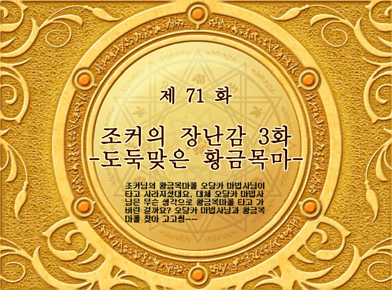 조커님의 황금목마를 오당카 마법사님이 타고 사라지셨대요. 대체 오당카 마법사님은 무슨 생각으로 황금목마를 타고 가버린 걸까요? 오당카 마법사님과 황금 목마를 찾아 고고씽~~