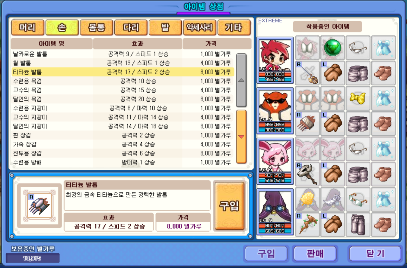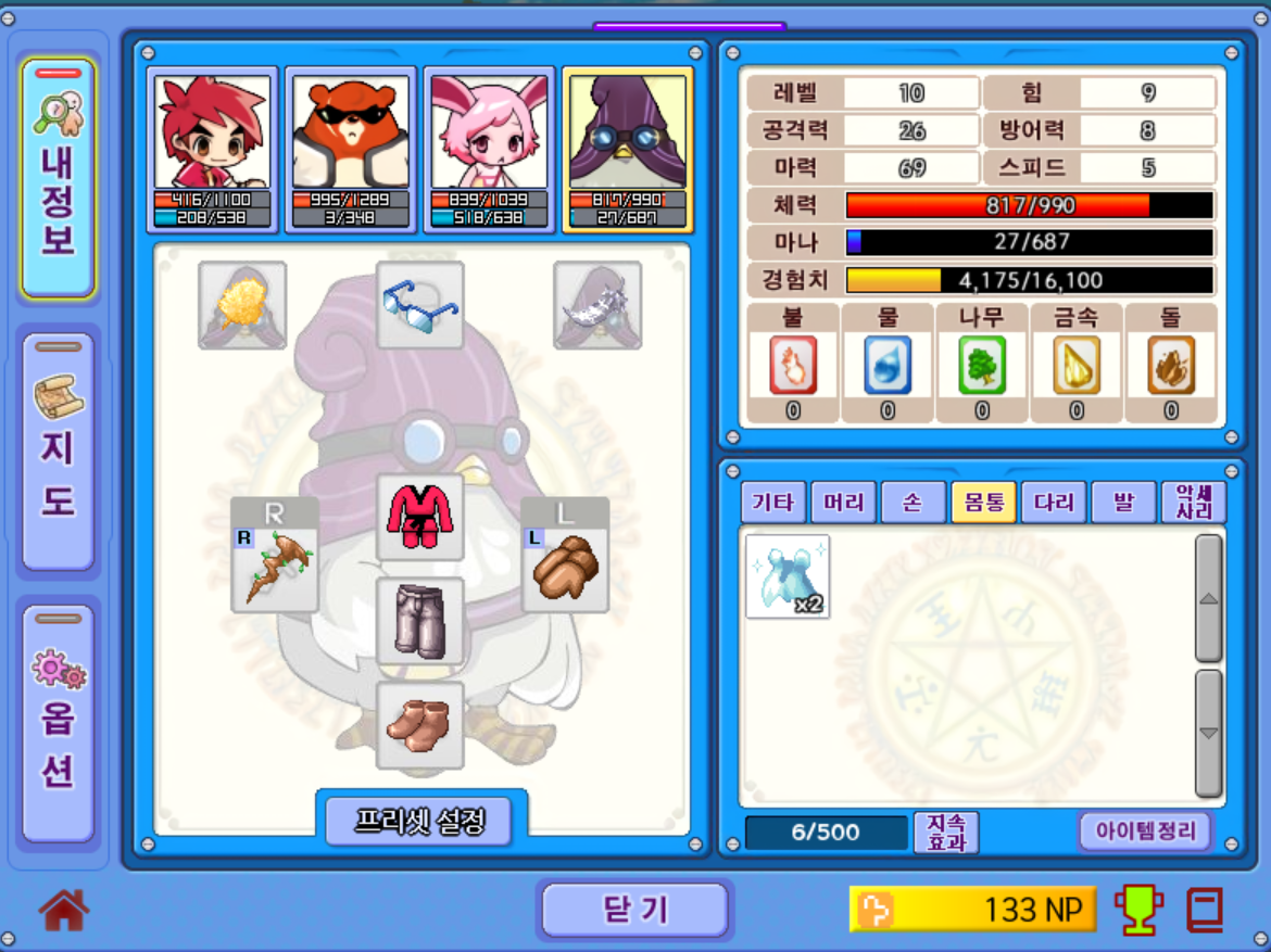 '크루소 빌리지' 클리어 이후 찍은 장비창입니다. 대충 이정도 스펙이면 클리어 할 수 있을 듯 합니다.
