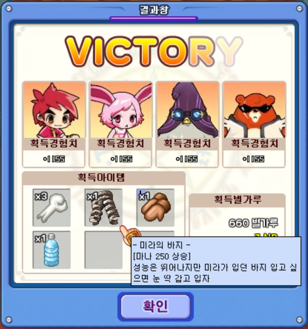 스펙업을 조금 더 해주고 다시 시도를 하니 겨우 잡을 수 있었습니다. '미라의 바지'는 마나 250을 올려주기 때문에 유용하게 써먹을 것 같네요.