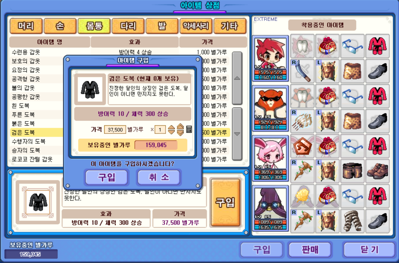 모든 캐릭터에게 방어구를 한단계 더 좋은 것들로 세팅을 해주고 도전해보도록 하겠습니다.