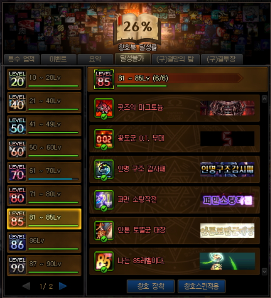 이제는 얻을 수 없기는 하지만 만약 안톤 시절 캐릭터가 있다면 '나는 85레벨이다.'라는 칭호에 던전에서 골드 획득시 획득 골드가 10%가 오르는 효과가 있기 때문에 이 칭호르 이용하면 바닥에 떨어지는 골드를 조금 더 많이 얻을 수 있습니다.