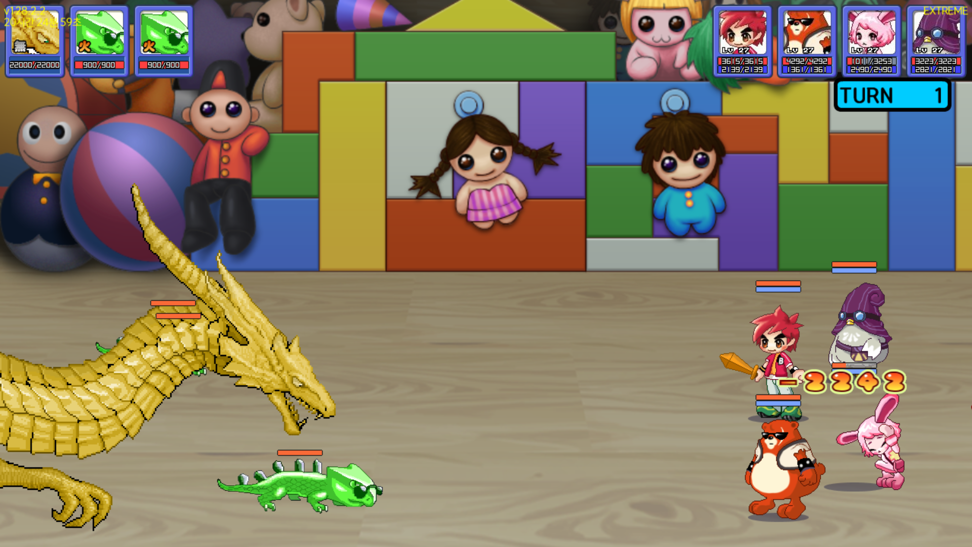 코스모스 드래곤의 체력이 22,000이나 되기 때문에 빨리 잡기는 거의 불가능이고, 장기전으로 끌고가야 합니다.