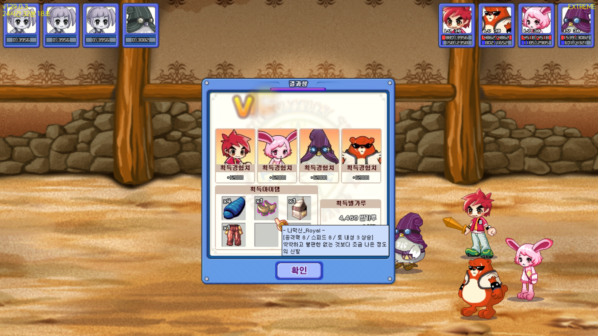 그래서 다시 던전 초입으로 돌아가 노가다를 뜁니다. 그래도 로얄 장비들을 계속 먹어가면서 각각 캐릭터에게 분배를 하면 전보다는 더 빠르게 스펙업을 할 수 있습니다.