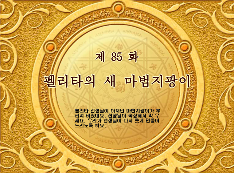 펠리타 선생님이 아끼던 마법지팡이가 부러져 버렸대요. 선생님이 속상해서 막 우세요. 우리가 선생님이 다시 웃게 만들어 드리도록 해요.
