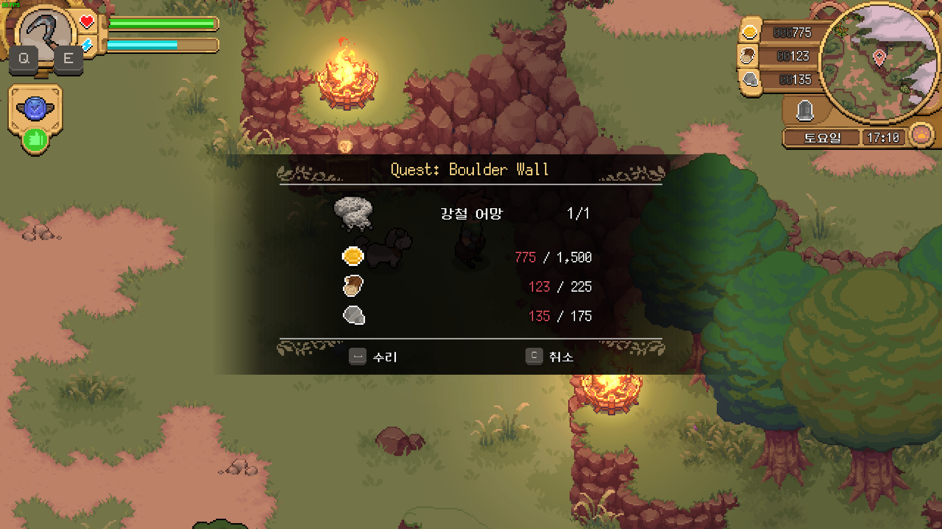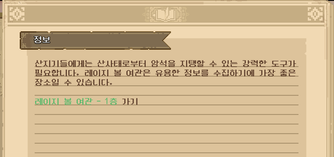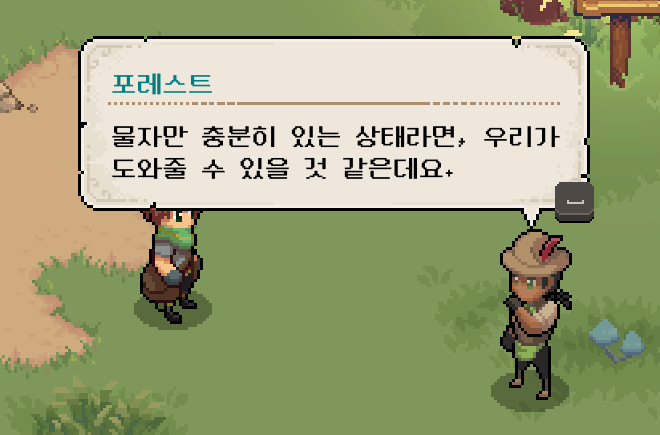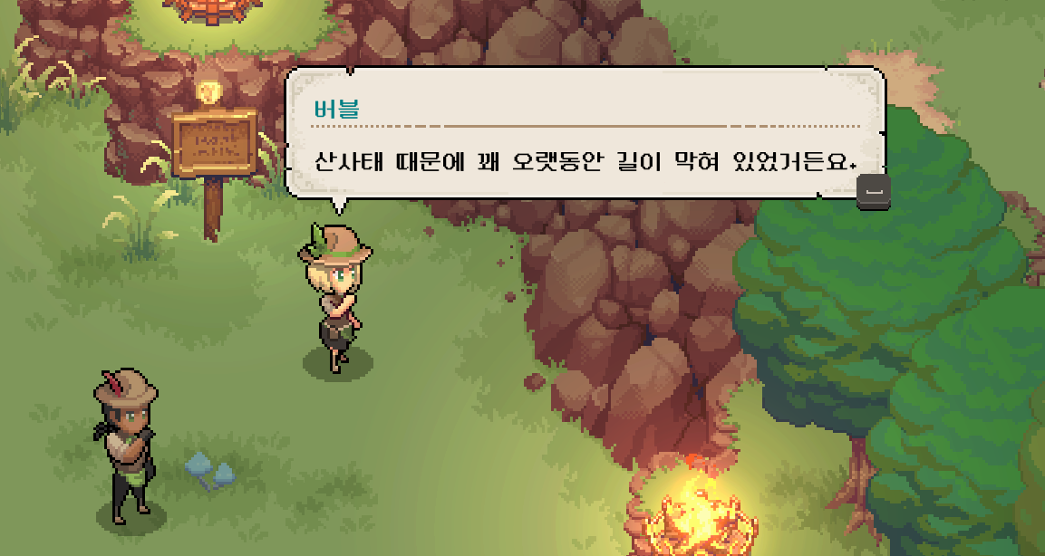 재료 수급을 위해 방목장을 가는 도중 산지기들을 만났습니다. 돌아다니다가 바위로 막힌 공간을 보기는 했었는데 이제 그 너머로 갈 수 있는 이벤트가 생겼습니다.