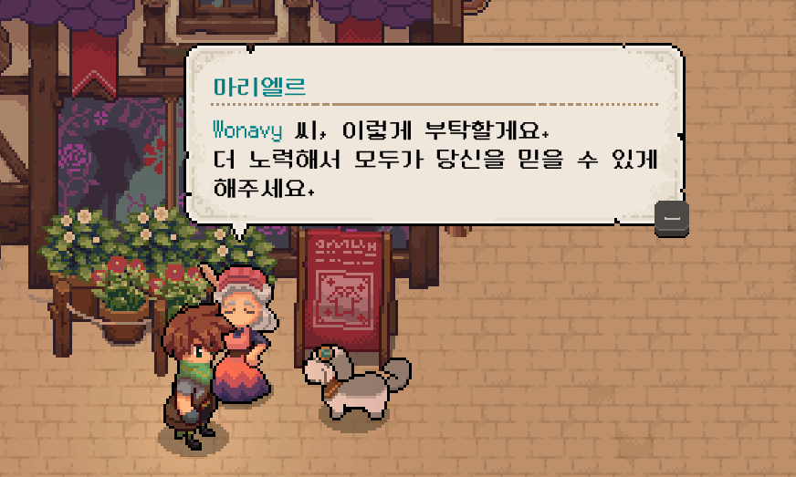 그렇게 NPC들과 말을 걸며 인사를 할 수 있었습니다. 하루에 한 번 대화를 하면 호감도가 살짝 올라갑니다. 그래서 NPC가 보이면 최대한 대화를 하는 것이 중요하다고 할 수 있겠네요.