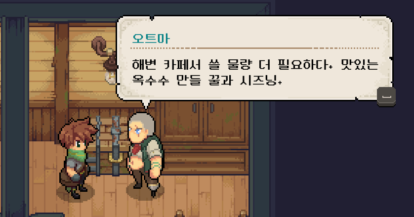 그렇게 NPC '오트마'를 찾아갔습니다. 강철 어망을 받는 조건으로 해변 카페에 필요한 재료를 주어야 했는데, 다행히 다 이미 있는 재료라 바로 건네 줄 수 있었습니다.