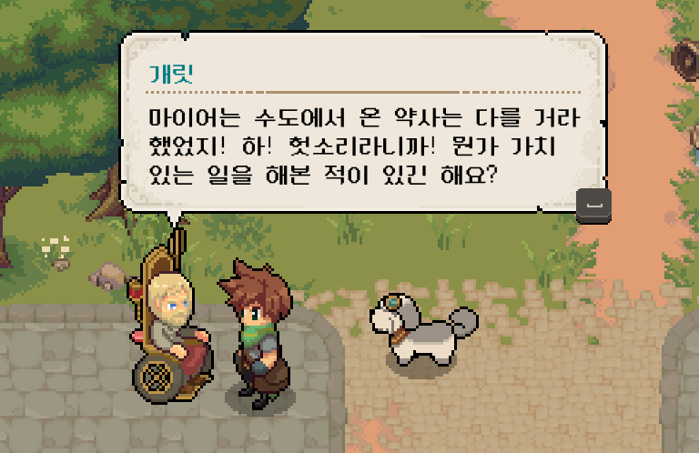 여유 시간이 남아서 마을 사람들과 대화를 해보려고 했으나 아직까지는 평판이 그렇게 좋지 않습니다. 시장 딸을 치료했다는 소식이 아직 퍼지지 않을걸까요...