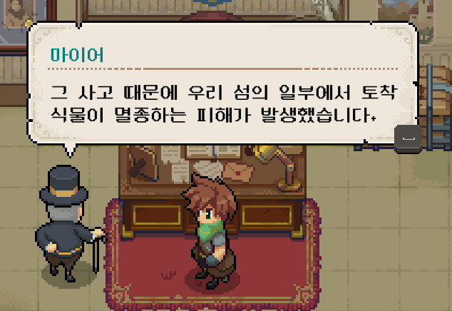 다음 날 마이어 시장을 만나 문버리 섬의 과거 이야기를 어느 정도 들을 수 있었습니다. 전임 약사의 잘못으로 섬의 토착 식물들이 멸종했다고 하니 확실히 주민들이 배척할만하겠다라는 생각이 드네요.