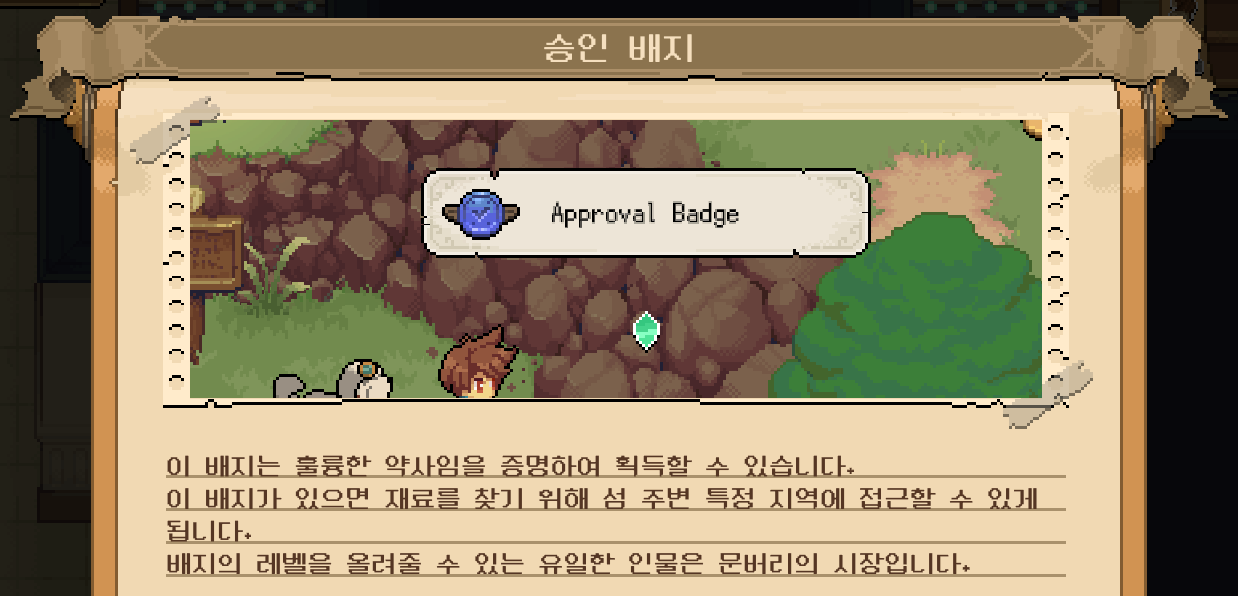 아무튼 이제 주민들의 치료를 위해 섬의 더 많은 부분을 탐험을 하기 위한 허가증을 발급 받게되었습니다.