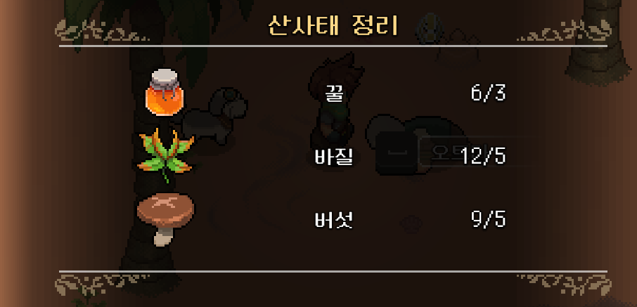 이후 퀘스트를 진행하려 했으나 시간이 맞지 않아 밤까지 재료 수급을 하면서 시간을 보냈습니다.