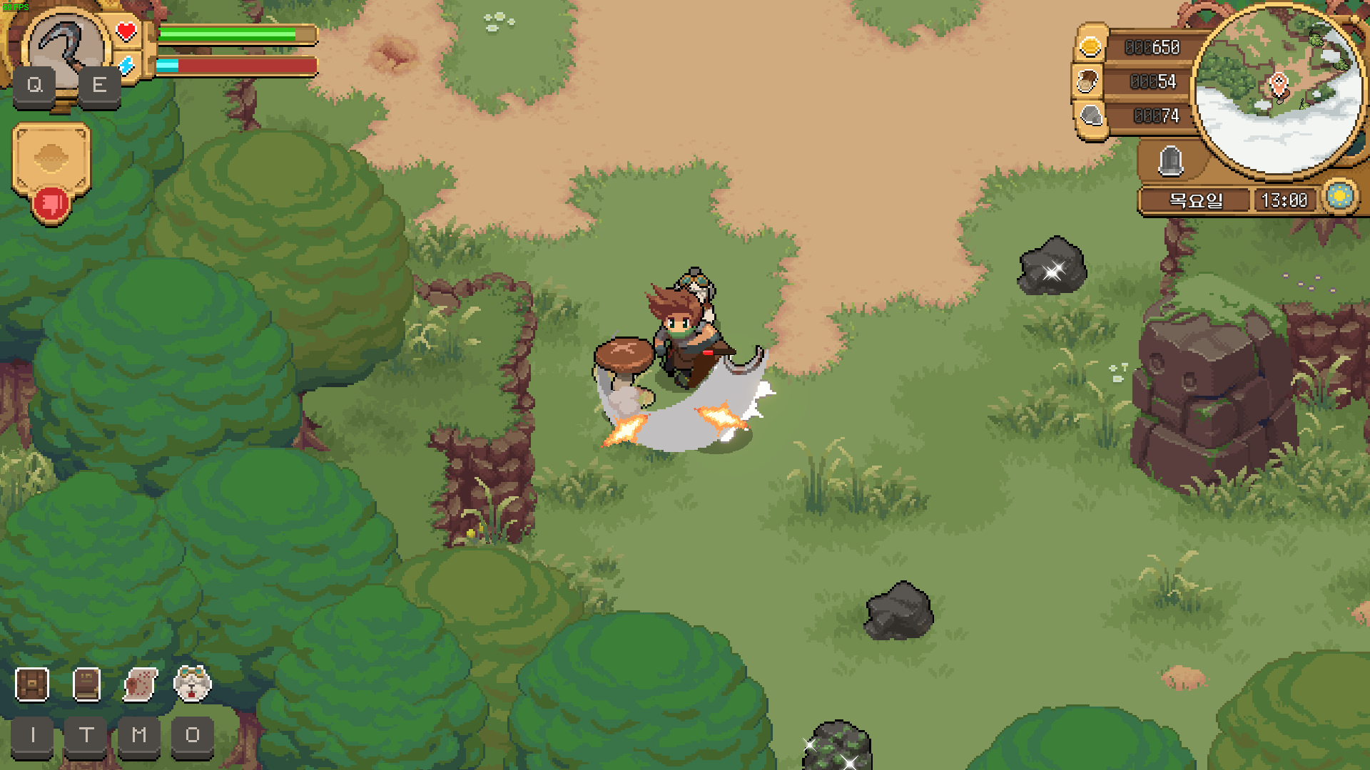 도구 업그레이드를 위해 평화롭게 도구를 휘두르며 재료를 수급을 하고 있었습니다.
