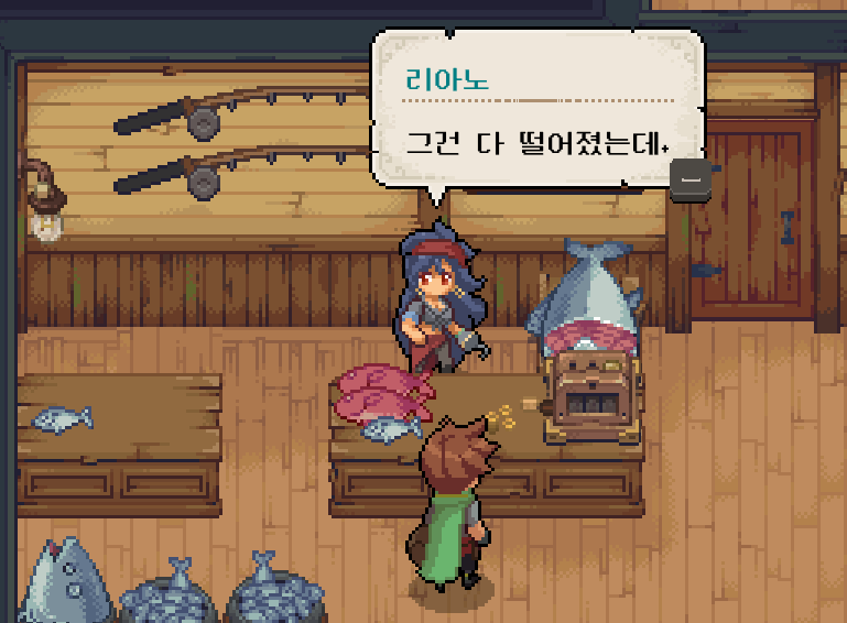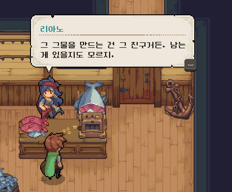 그물을 구하러 갔지만 역시 이미 다 떨어진 상태입니다. 그나마 다행인 건 그물을 만드는 NPC가 있다고 하니 직접 찾아가보라는 말을 해줍니다.