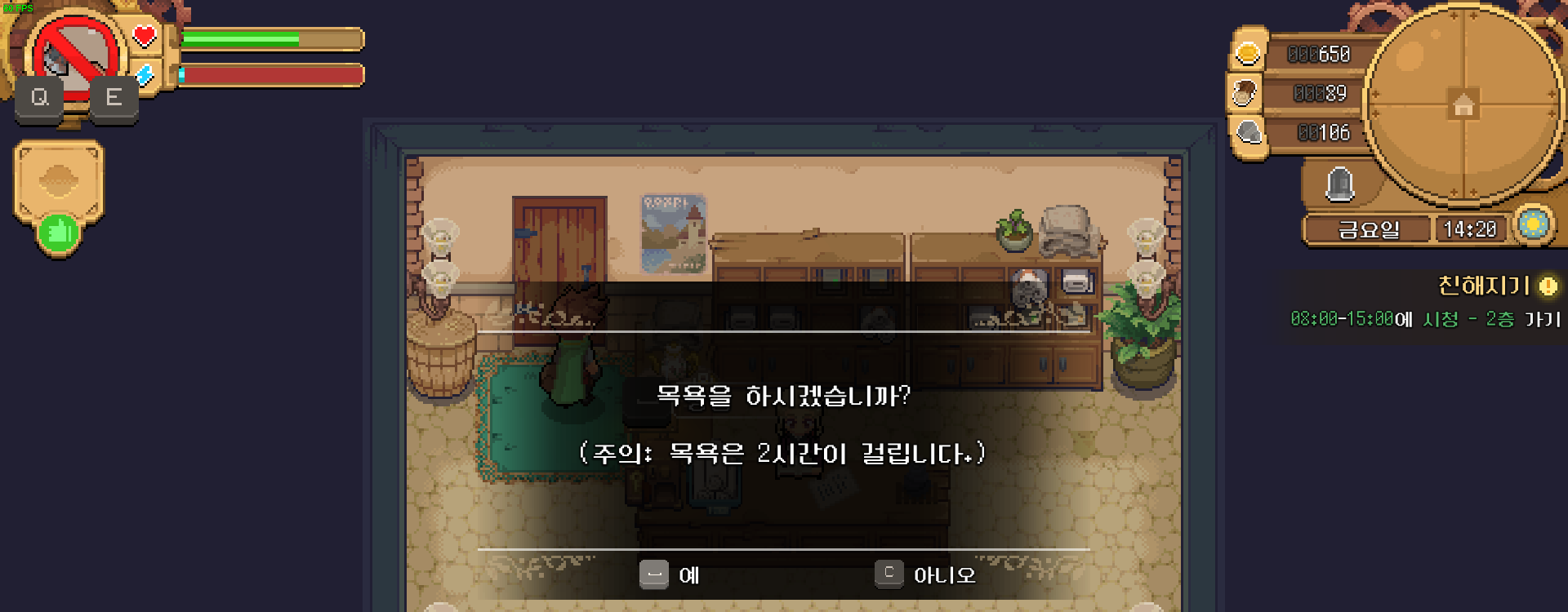 스태미나가 다 떨어지면 음식을 통해서 보충을 할 수 있지만 온천을 들러 목욕을 하는게 확실하게 채울 수 있어서 방문을 해봤습니다.