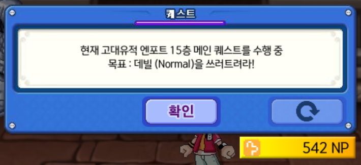 15층의 보스는 '데빌'입니다. 강력한 전체 공격 기술인 '메테오 스트라이크'를 사용하기 때문에 버티는 것이 중요합니다.