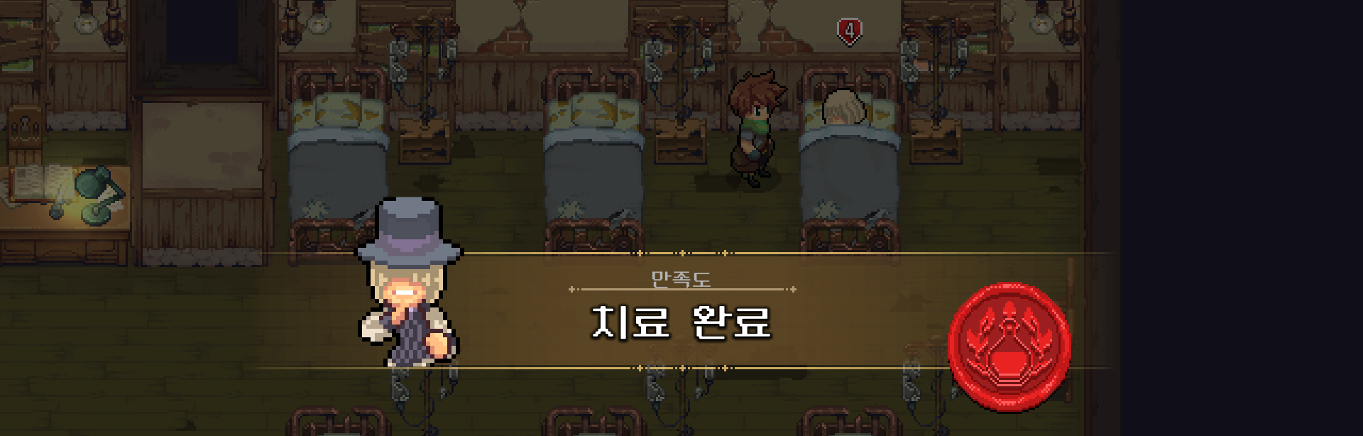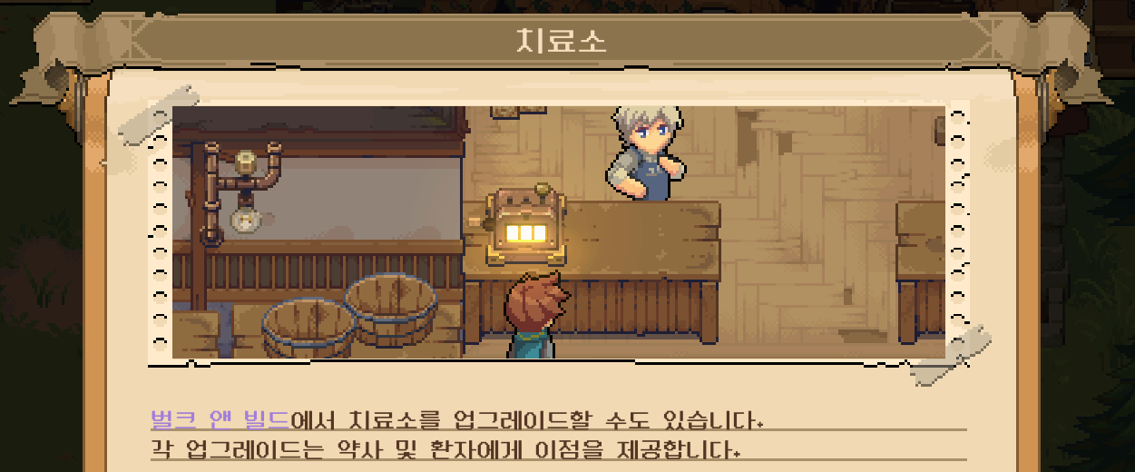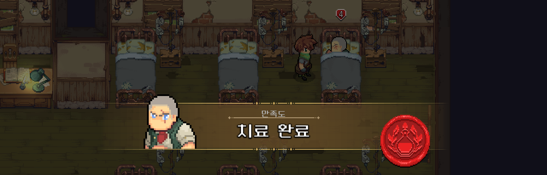 일어나니 치료소가 약간 업그레이드가 되었습니다. 이제 주민이 병에 걸려 실려오면 경적이 울리는 사이렌이 추가가 되었더라고요.