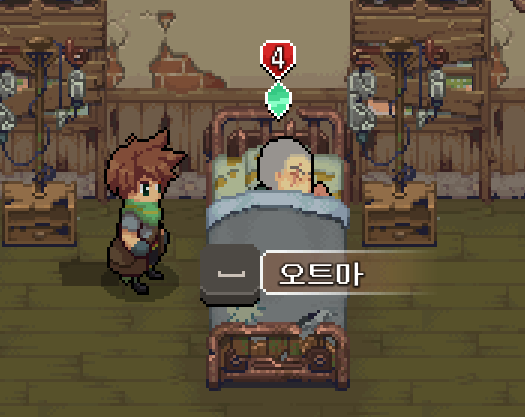 저번에 강철 그물을 건네주었던 NPC '오트마'가 실려왔습니다. 이래저래 아픈 주민들이 많은 듯합니다.