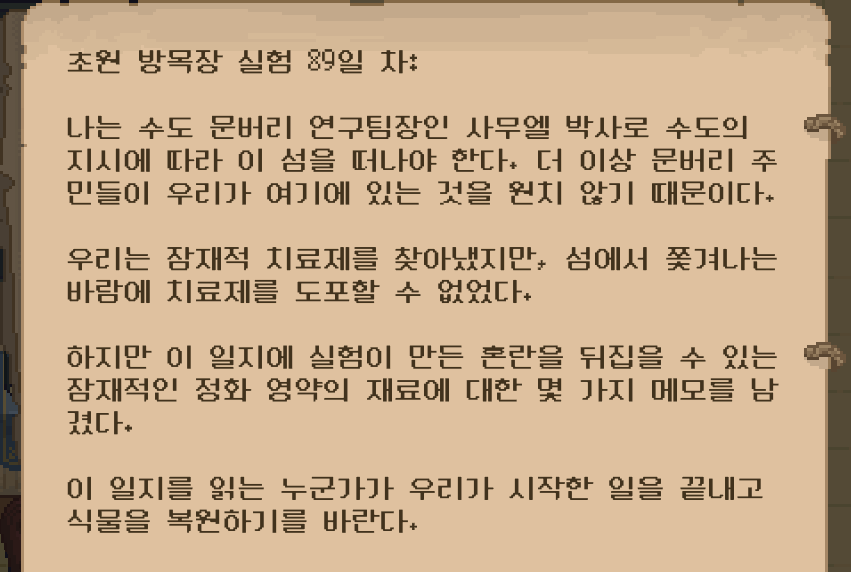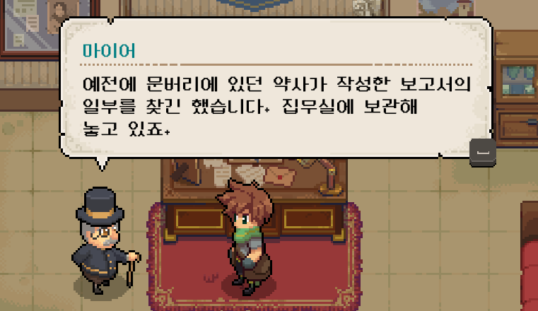 마이어 시장님을 찾아가니 수십 년 전에 일어난 사고가 있었다면서, 과거 문버리에 있었던 약사가 남긴 보고서 일부가 있으니 읽어보라는 내용이었습니다.