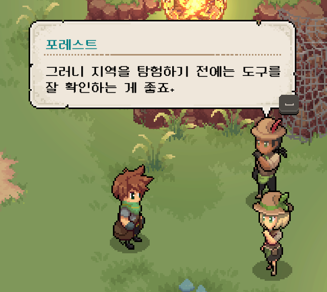 산지기의 이야기를 들어보니 지역을 제대로 탐험하기 전에는 도구를 잘 확인하는 것이 좋다는 조언을 해주었습니다. 어느 정도 맞는 말이기 때문에 정비를 해줄 필요가 있기는 합니다.
