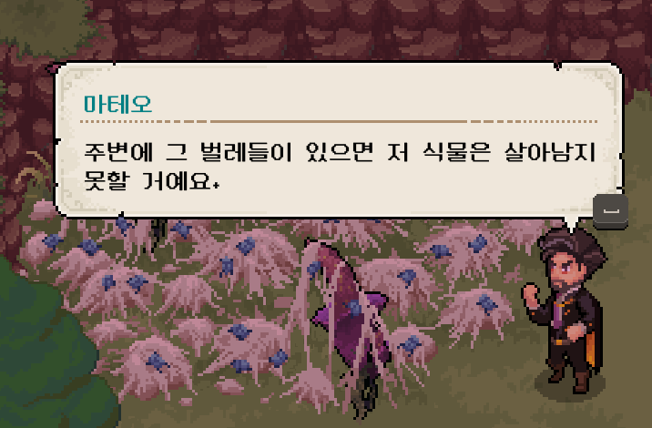 여기서 주인공이 등장합니다. 역시 마테오는 화를 내며 자리를 떠버립니다. 그렇다고 해결을 안 할 수는 없기 때문에 식물을 좀 먹는 벌레에 대한 정보를 알아보기로 했습니다.
