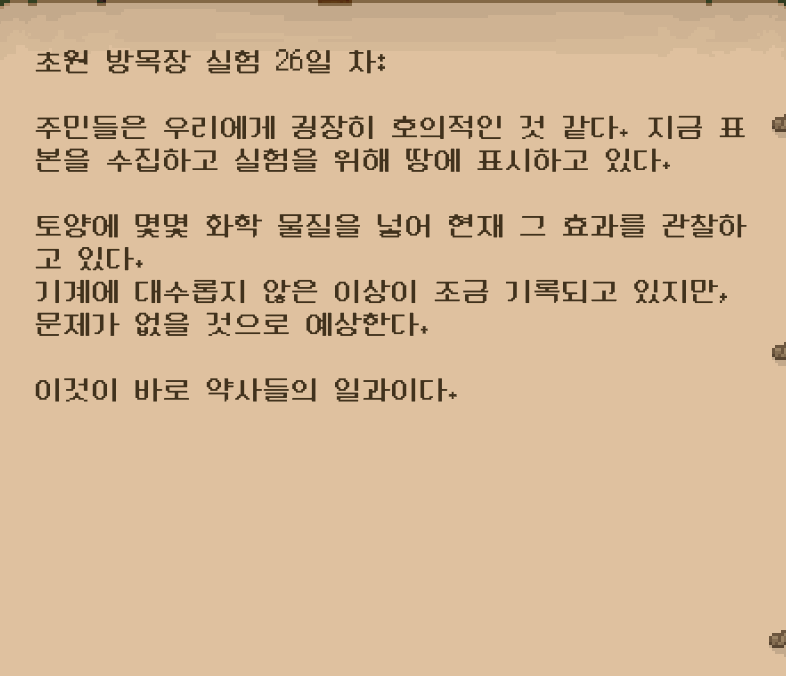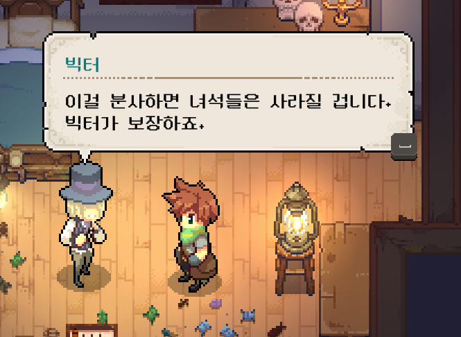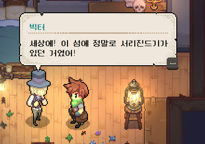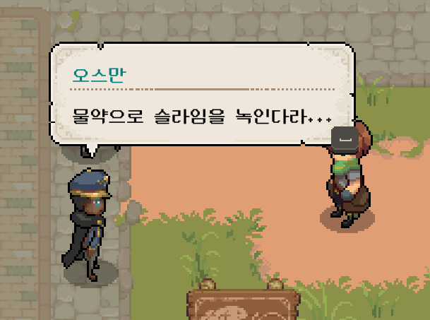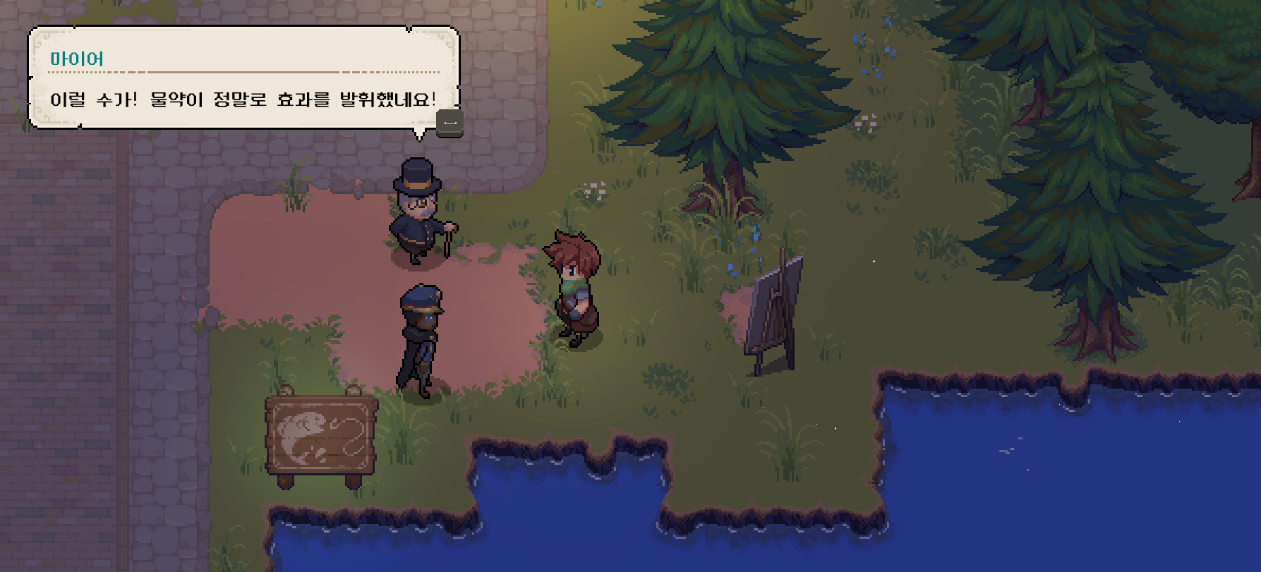 가끔씩 소소한 이벤트도 발생하게 되는데, 낚시터에 있는 슬라임을 없애기 위해 녹이는 물약을 연구하고 만드는 그런 일거리가 생기기도 합니다.