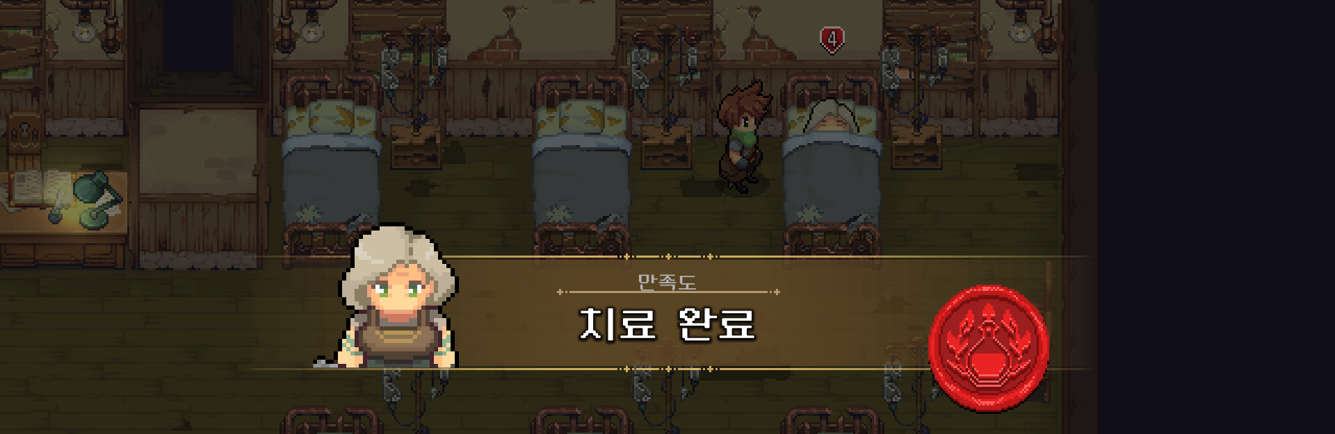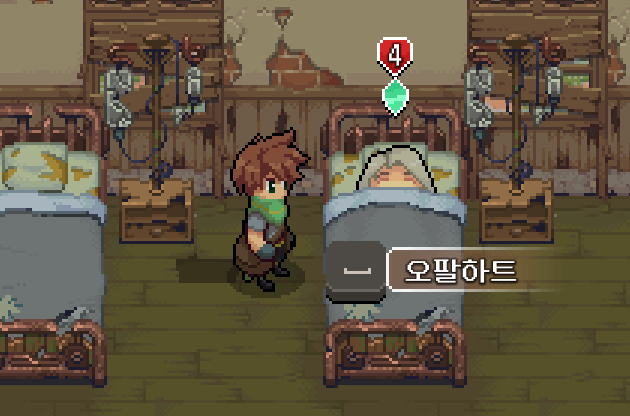 하지만 다음 날 오팔하트가 치료소에 실려왔습니다. 포션퍼밋에서는 NPC가 입원을 하면 치료가 될 때까지 아무런 행동을 하지 않기 때문에 케이블카 수리는 살짝 미뤄두기로 했습니다.