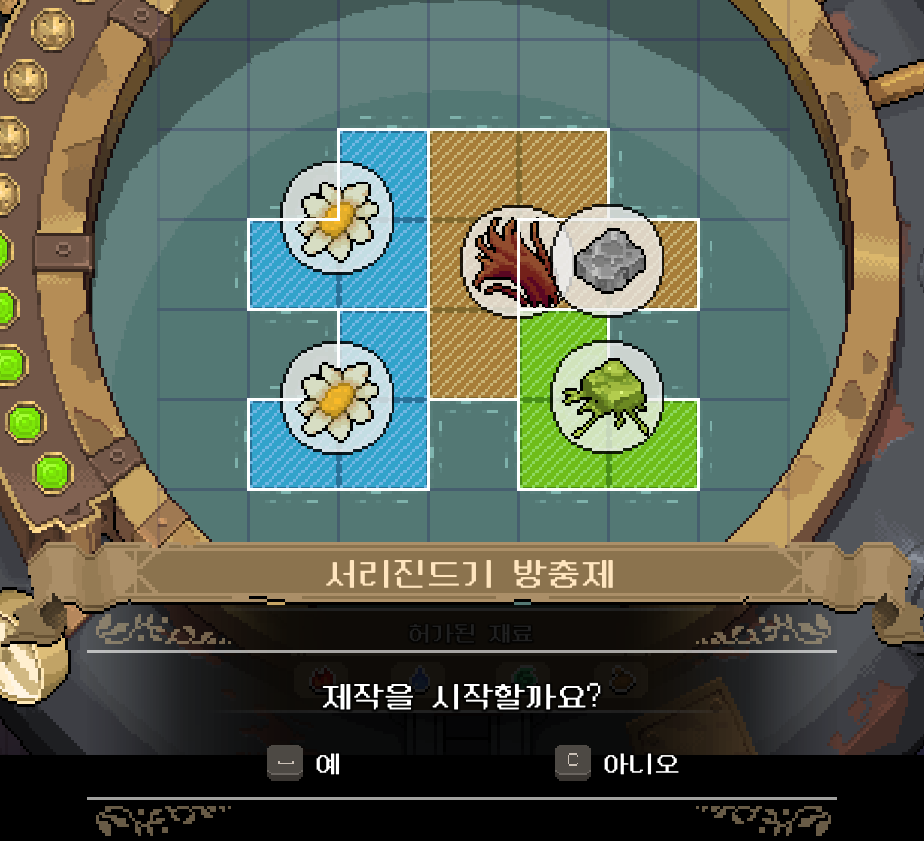 바로 가지고 있는 약재로 '서리진드기 방충제'를 만들었고, 낚시터의 슬라임 제거를 위해 '슬라임 키서'도 같이 만들었습니다. 어차피 만들어야 하니 겸사겸사 같이 해주었습니다.