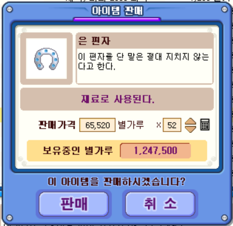 이런식으로 유니콘들을 워낙 많이 잡다보니, 유니콘이 드랍하는 아이템을 싹다 모아 파니 별가루가 꽤나 쏠쏠하게 나와주었습니다.