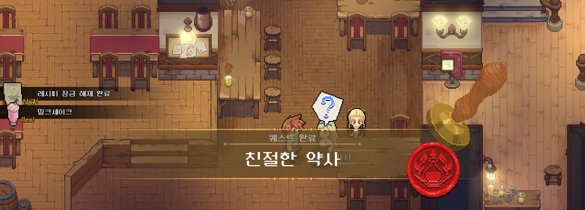 그렇게 '친절한 약사' 퀘스트를 완료할 수 있었습니다. 요리에 필요한 레시피도 받을 수 있어서 자잘한 퀘스트도 되도록이면 클리어를 해야 될 것 같습니다.